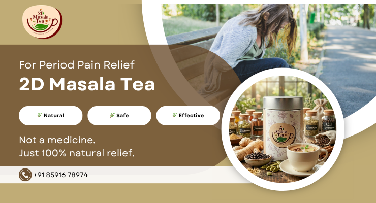 Looking for natural period pain relief in Kerala? 2D Masala Tea eases menstrual cramps, bloating, and discomfort. Not a medicine – safe for all ages. Learn how to use it.